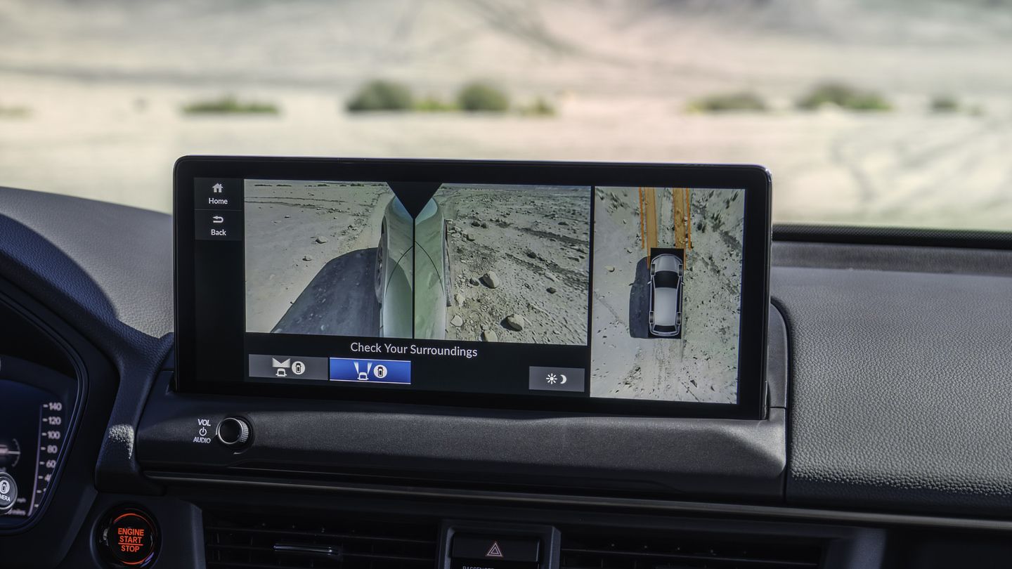 Le système de caméra TrailWatch, standard sur le TrailSport Touring, utilise quatre caméras extérieures pour offrir des vues avant, arrière, latérale et à 360 degrés. Des graphiques de placement des pneus aident les conducteurs à naviguer autour d'obstacles hors de leur ligne de vue naturelle, comme les crêtes aveugles, les ornières profondes et le bord du sentier.